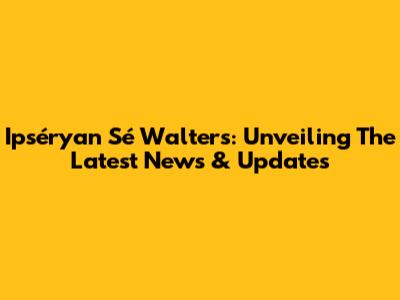 Ipséryan Sé Walters: Unveiling The Latest News & Updates