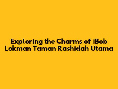 Hey guys! Let's dive into something super interesting today: iBob Lokman Taman Rashidah Utama. This place is a real gem, and I'm stoked to share all the cool deets with you. We'll explore what makes this location so special, covering everything from its unique features to the amazing experiences you can have there. So, buckle up, and let's get started on this exciting journey! Taman Rashidah Utama, in particular, has become a popular spot, and knowing why will really give you the whole picture.
