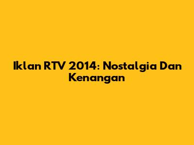 Iklan RTV 2014: Nostalgia Dan Kenangan
