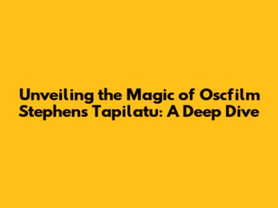 Unveiling the Magic of Oscfilm Stephens Tapilatu: A Deep Dive