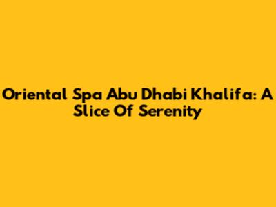 Oriental Spa Abu Dhabi Khalifa: A Slice Of Serenity