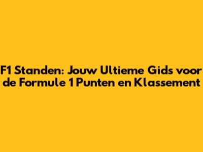 Hoi guys! Klaar om je helemaal onder te dompelen in de spannende wereld van de Formule 1? We gaan diep duiken in de F1 standen, bekijken hoe de punten verdeeld worden, en alles wat je moet weten over het F1 klassement. Of je nu een doorgewinterde fan bent of net komt kijken, deze gids is voor jou. Pak een drankje, leun achterover, en laten we beginnen!