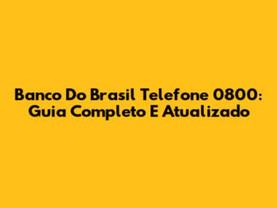 Banco Do Brasil Telefone 0800: Guia Completo E Atualizado