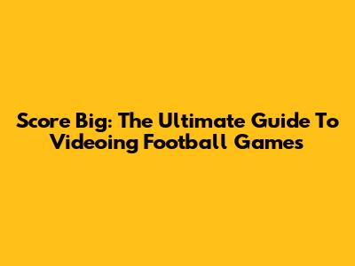 Score Big: The Ultimate Guide To Videoing Football Games