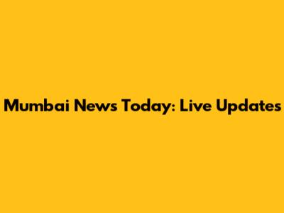 Mumbai News Today: Live Updates