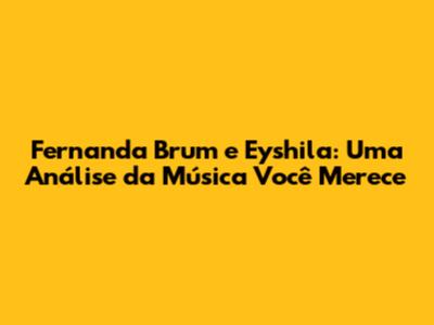 A música 'Você Merece' é uma obra-prima que celebra o amor e a bondade de Deus. A combinação da letra inspiradora, da melodia emocionante e da interpretação apaixonada de Fernanda Brum e Eyshila a tornou um hino atemporal. A música continua a tocar os corações das pessoas e a fortalecer a fé. Ao ouvir 'Você Merece', somos convidados a reconhecer a grandeza de Deus, a expressar nossa gratidão e a confiar em Seu amor incondicional. A colaboração entre Fernanda Brum e Eyshila é um exemplo de como a música gospel pode unir as pessoas em torno de um propósito maior. A música é um testemunho do poder da fé e da esperança, e continua a inspirar e transformar vidas.