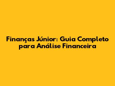 Finanças Júnior: Guia Completo Para Análise Financeira