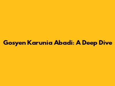 Gosyen Karunia Abadi: A Deep Dive