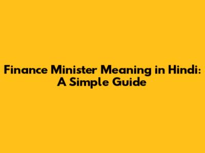 The term "Finance Minister" translates to वित्त मंत्री (Vitta Mantri) in Hindi. Vitta refers to finance or wealth, and Mantri means minister. So, when you combine them, you get the person in charge of a country's or state's financial affairs.