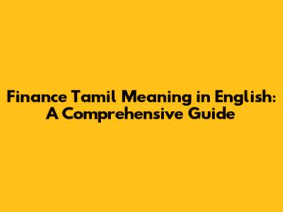 Finance Tamil Meaning: Key Words and Concepts
