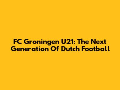 FC Groningen U21: The Next Generation Of Dutch Football