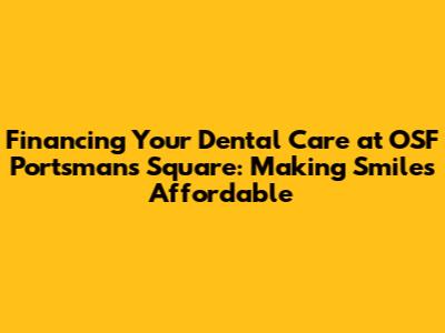 Understanding Your Dental Financing Options at OSF Portsmans Square