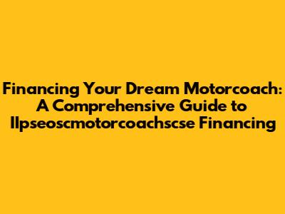 Hey guys, so you're dreaming of hitting the open road in a luxurious motorcoach? Awesome! But let's be real, those beauties don't come cheap. That's where IIpseoscmotorcoachscse financing comes in. In this guide, we'll dive deep into everything you need to know about securing the financial backing to make your motorcoach dreams a reality. We'll cover the ins and outs of motorcoach financing, explore different financing options, and offer tips to help you get the best possible terms. So buckle up, grab a coffee (or your beverage of choice), and let's get started!