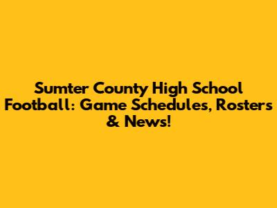 Sumter County High School Football: Game Schedules, Rosters & News!