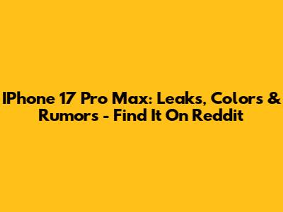 IPhone 17 Pro Max: Leaks, Colors & Rumors - Find It On Reddit