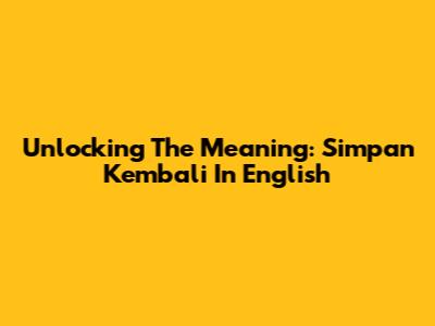 Unlocking The Meaning: 'Simpan Kembali' In English