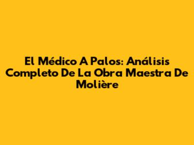 El Médico A Palos: Análisis Completo De La Obra Maestra De Molière