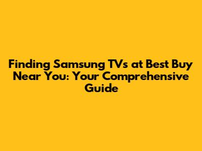 Hey guys! If you're on the hunt for a new TV and have "Samsung TVs at Best Buy near me" on your mind, you're in the right place. Shopping for a TV can feel like wading through a sea of specs and jargon, but don't worry, I'm here to break it down. Best Buy is a go-to spot for many, offering a wide selection of Samsung TVs. Let's dive into how you can easily find the perfect Samsung TV at your local Best Buy, and what to consider before you make a purchase. I'll cover everything from the different Samsung TV models available to factors like size, resolution, and the latest technologies. So, grab a snack, sit back, and let’s explore how to snag that awesome new Samsung TV!