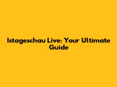 Istageschau Live: Your Ultimate Guide