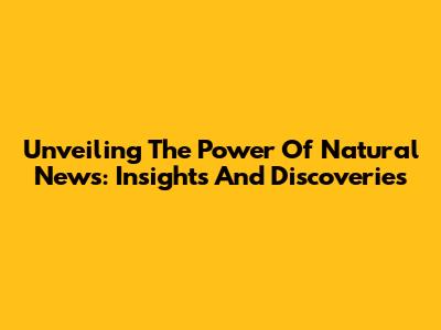 Unveiling The Power Of Natural News: Insights And Discoveries