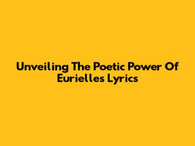 Unveiling The Poetic Power Of Eurielle's Lyrics
