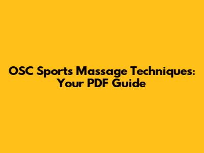OSC Sports Massage Techniques: Your PDF Guide