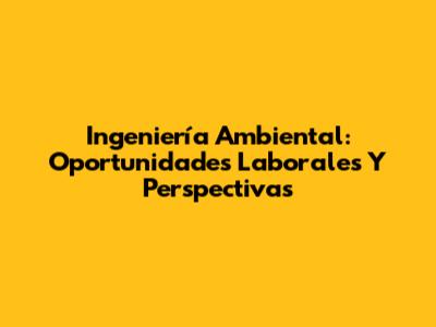 Ingeniería Ambiental: Oportunidades Laborales Y Perspectivas