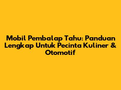 Mobil Pembalap Tahu: Panduan Lengkap Untuk Pecinta Kuliner & Otomotif