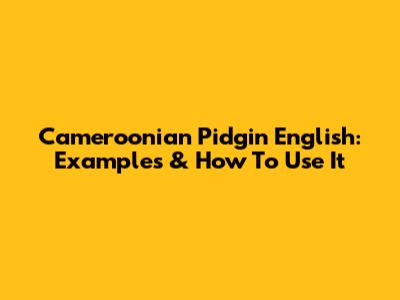 Cameroonian Pidgin English: Examples & How To Use It