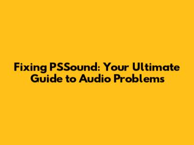 Fixing PSSound: Your Ultimate Guide To Audio Problems