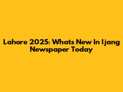 Lahore 2025: What's New In Ijang Newspaper Today