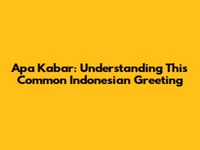 Apa Kabar: Understanding This Common Indonesian Greeting