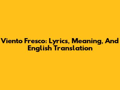 Viento Fresco: Lyrics, Meaning, And English Translation
