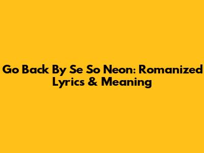 Go Back By Se So Neon: Romanized Lyrics & Meaning