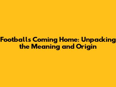 What Does "Football's Coming Home" Really Mean?