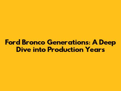 Hey guys! Ever wondered about the Ford Bronco's journey through time? This iconic SUV has a rich history, and knowing its manufacturing years can be super helpful, whether you're a car enthusiast, a potential buyer, or just plain curious. We're going to dive deep into each generation, exploring their production years, key features, and what makes them stand out. Buckle up, because we're about to embark on a thrilling ride through the Ford Bronco's timeline!