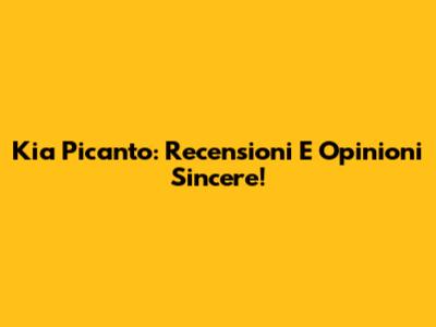 Kia Picanto: Recensioni E Opinioni Sincere!