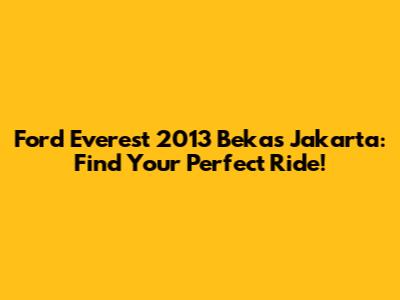 Hey guys! Are you on the hunt for a Ford Everest 2013 bekas in Jakarta? Well, you've come to the right place! Finding a reliable and affordable SUV in a bustling city like Jakarta can be a real challenge. But don't worry, we're here to guide you through the process and help you snag the best deal on a used Ford Everest 2013. Jakarta, the vibrant capital of Indonesia, is a melting pot of cultures and a hub of economic activity. Navigating its busy streets requires a robust and dependable vehicle, and the Ford Everest 2013 fits the bill perfectly. This SUV is known for its spacious interior, powerful engine, and rugged build, making it an ideal choice for both city commutes and weekend adventures. The used car market in Jakarta is teeming with options, but sifting through them can be overwhelming. That's why it's crucial to have a clear understanding of what to look for in a used Ford Everest 2013. Factors like mileage, condition, service history, and price all play a vital role in making an informed decision. With a bit of research and careful consideration, you can find a gem that offers excellent value for your money. The Ford Everest 2013 is more than just a mode of transportation; it's a statement of practicality and style. Its commanding presence on the road and its ability to handle various terrains make it a versatile choice for Jakarta's diverse driving conditions. Whether you're navigating the city's congested streets or exploring the scenic routes around the metropolitan area, the Everest 2013 provides a comfortable and confident driving experience. Plus, with its spacious interior, you can easily accommodate your family, friends, and all your gear, making it perfect for road trips and weekend getaways. So, if you're ready to embark on your quest for a Ford Everest 2013 bekas in Jakarta, let's dive in and explore the key aspects to consider. From understanding the vehicle's specifications and features to navigating the used car market and negotiating the best deal, we've got you covered. Get ready to find your perfect ride and experience the thrill of owning a reliable and capable SUV in the heart of Jakarta!