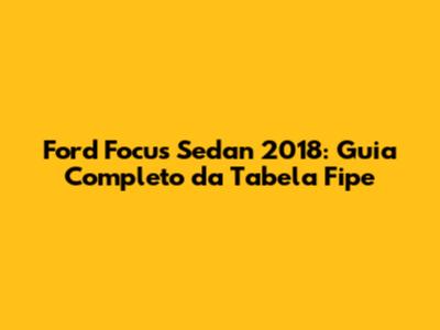 Decoding the 2018 Ford Focus Sedan Tabela Fipe Value