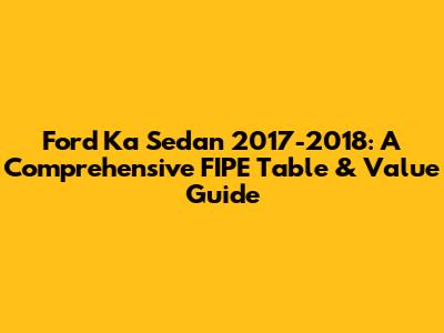 Hey guys, let's dive into the Ford Ka Sedan from the 2017 and 2018 model years! If you're looking to buy, sell, or just get a sense of what this popular compact car is worth, you're in the right place. We'll be taking a deep dive into the FIPE Table (Tabela FIPE), the Brazilian vehicle pricing guide, and how it applies to the Ford Ka Sedan. This guide will help you understand the car's value, explore its features, and make informed decisions, whether you're a potential buyer, a seller, or simply a car enthusiast. Let's get started!