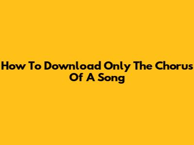 How To Download Only The Chorus Of A Song
