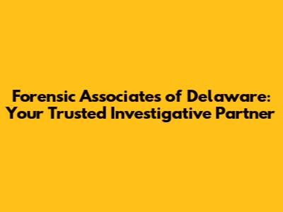 Hey everyone! Ever found yourself in a situation where you need some serious digging, like a real-life detective kinda thing? Maybe you suspect some shady business, or you're caught in a legal tangle, or perhaps you need to unravel a digital mystery. That's where Forensic Associates of Delaware steps in, your go-to squad for all things investigative. We're talking about a team of pros who know the ins and outs of forensic science, ready to help you navigate complex situations and uncover the truth. Think of us as your trusted partners, providing expert witness services, digging deep into fraud examination, and offering top-notch litigation support. Based right here in Delaware, we're not just another firm; we're your local allies in the pursuit of justice and clarity.