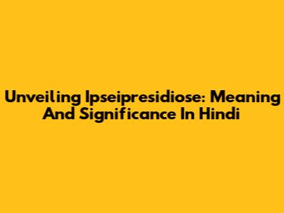 Unveiling 'Ipseipresidiose': Meaning And Significance In Hindi