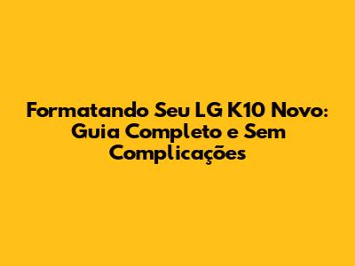 Passos para Formatar o LG K10 Novo: Modo Fácil 😎