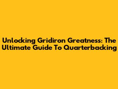 Unlocking Gridiron Greatness: The Ultimate Guide To Quarterbacking