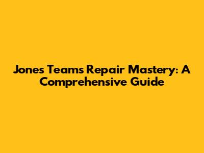 Jones Team's Repair Mastery: A Comprehensive Guide