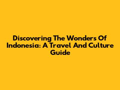 Discovering The Wonders Of Indonesia: A Travel And Culture Guide