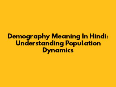Demography Meaning In Hindi: Understanding Population Dynamics