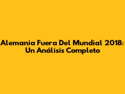 Alemania Fuera Del Mundial 2018: Un Análisis Completo