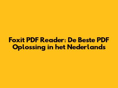 Waarom Foxit PDF Reader in het Nederlands Kiezen?